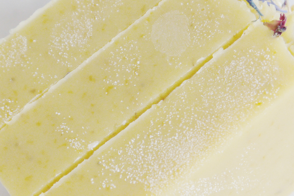 Die Wahl der Fette und Öle spielt eine größere Rolle, als man zunächst denkt. Rezepte mit einem hohen Anteil an flüssigen, langsam verseifenden Ölen (z. B. Olivenöl, Reiskeimöl oder Sonnenblumenöl) neigen eher zu Sodaasche. Der Seifenleim bleibt länger weich und „offen“, wodurch die Oberfläche länger mit Luft reagieren kann. Rezepte mit mehr festen Fetten verseifen in der Regel schneller und zeigen oft weniger Sodaasche. Ein gutes Beispiel dafür ist meine Oliven-Kamillen-Seife: hier hat sich eine dicke Schicht auf der Oberfläche gebildet, die aber tatsächlich der Seife einen besonderen Look gab. - Wasseranteil in der Lauge